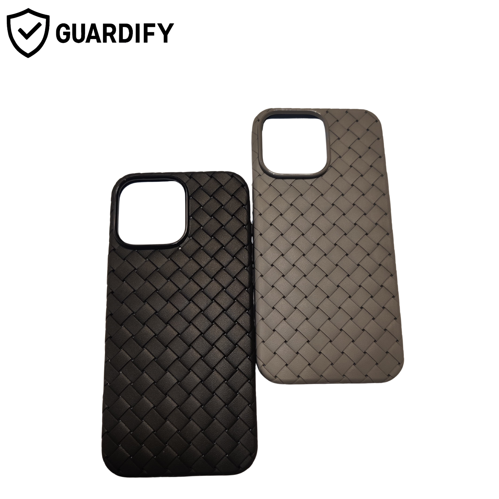 Protect your IPhone in style with the Guardify Woven Black Mobile Cover.