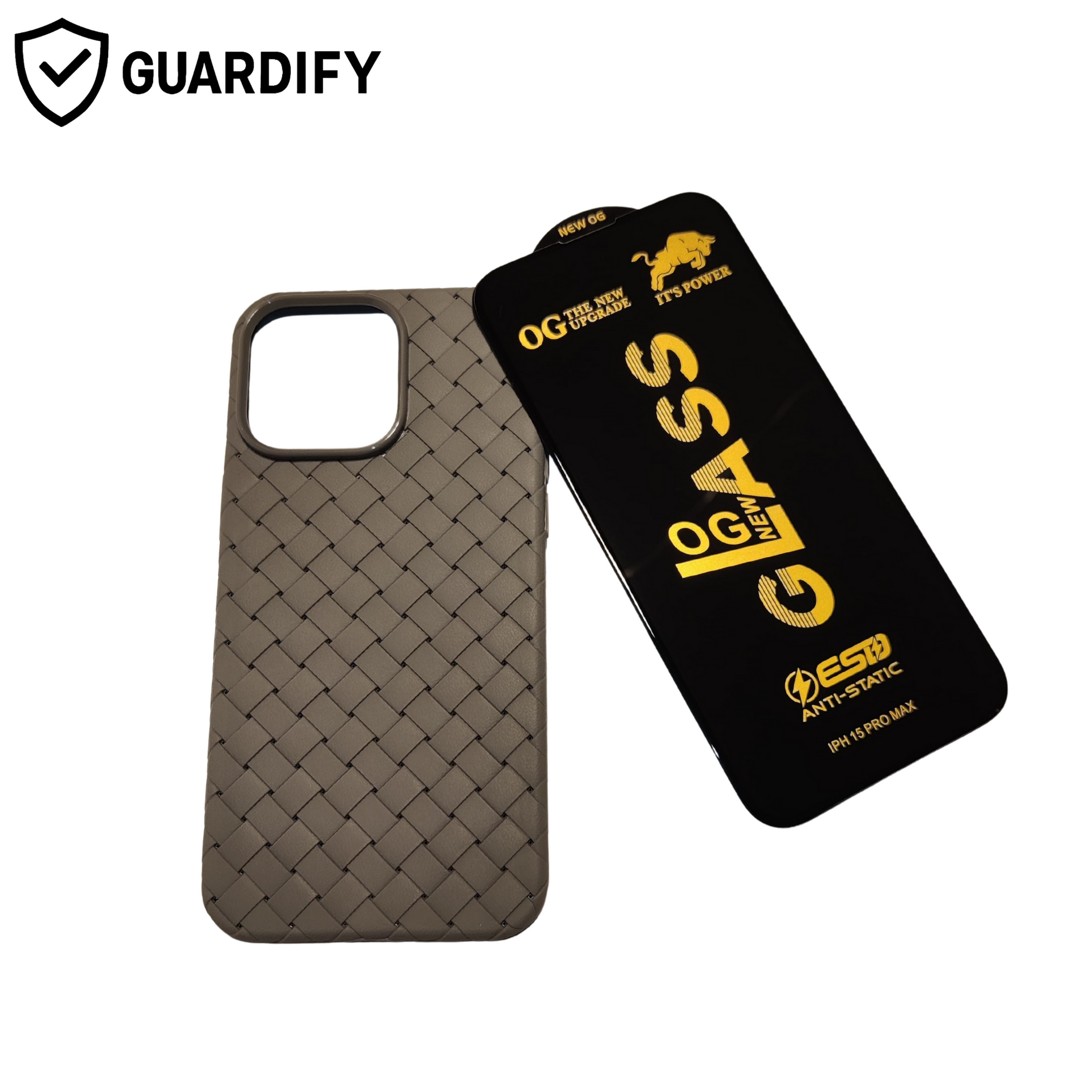 iPhone 16 Pro Max Woven Black Mobile Cover + FREE Tempered Glass Protector