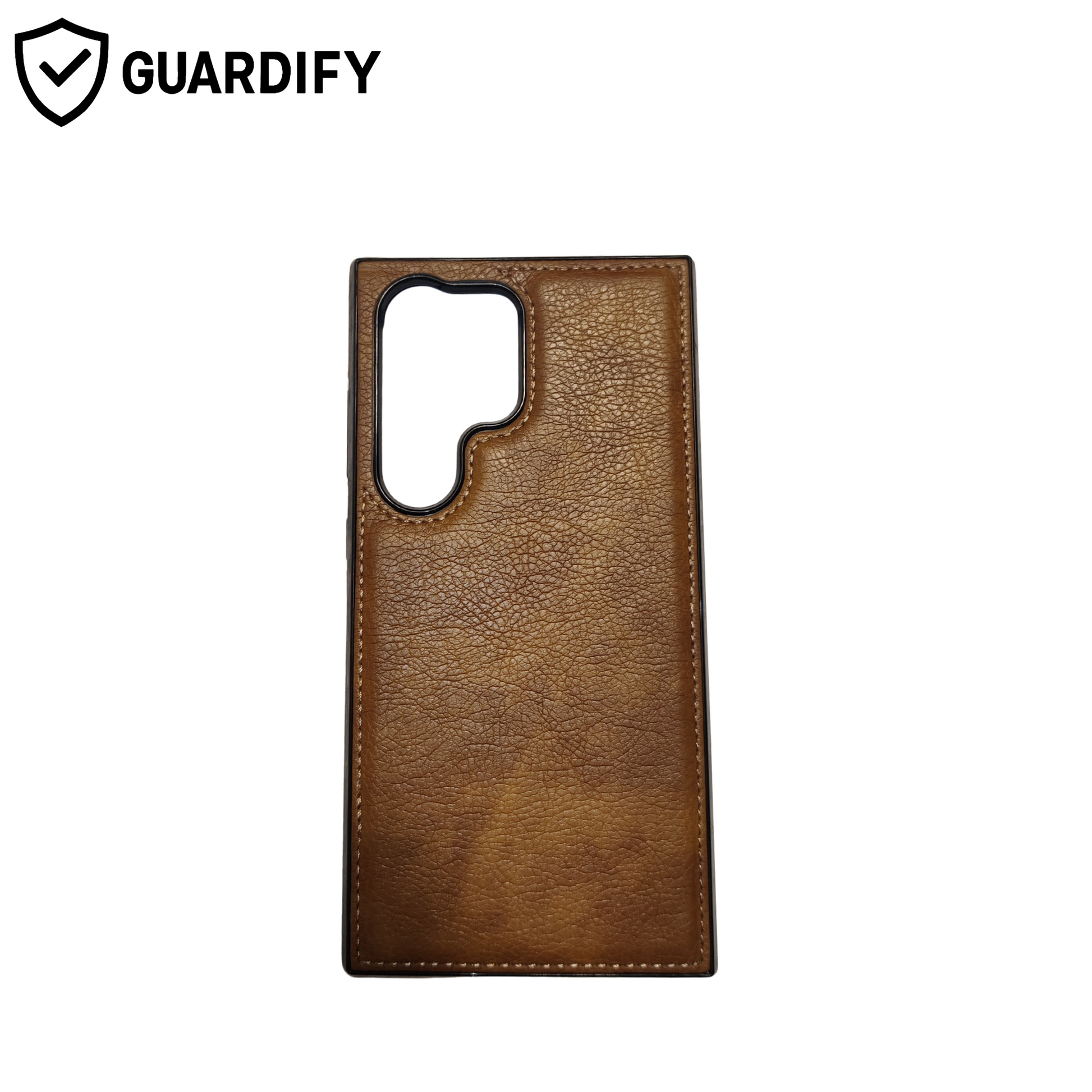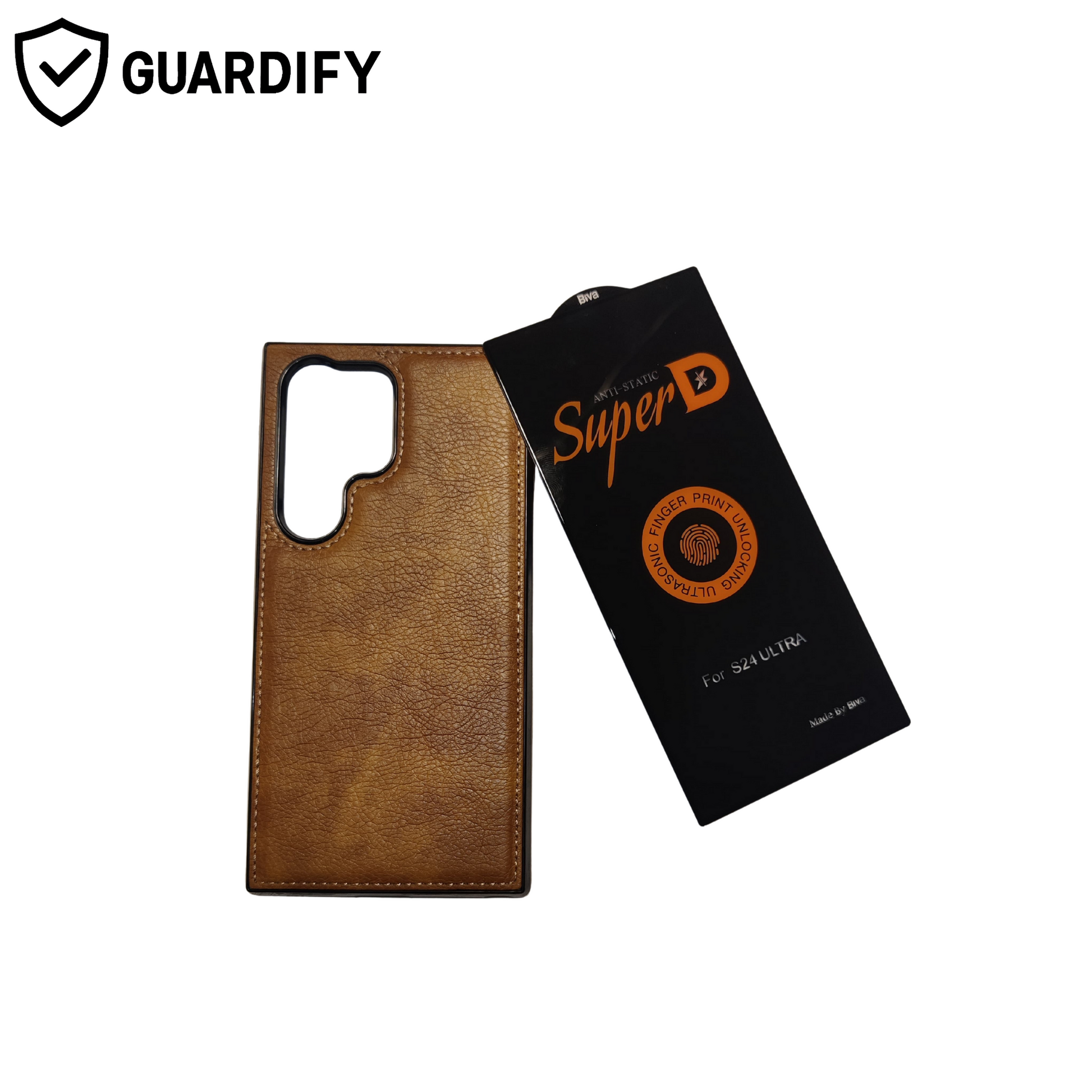 Give your Samsung Galaxy S24 Ultra a classy upgrade with the Guardify Leather Brown Mobile Cover. Designed with a premium leather-textured finish, this case not only adds elegance but also protects your phone from drops, scratches, and daily wear. Every cover comes with a FREE tempered glass screen protector, ensuring complete all-around protection.